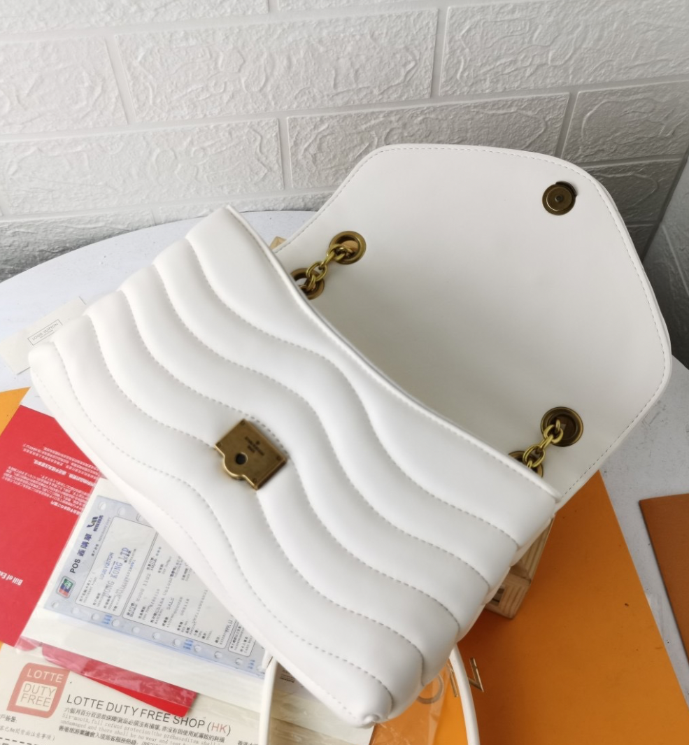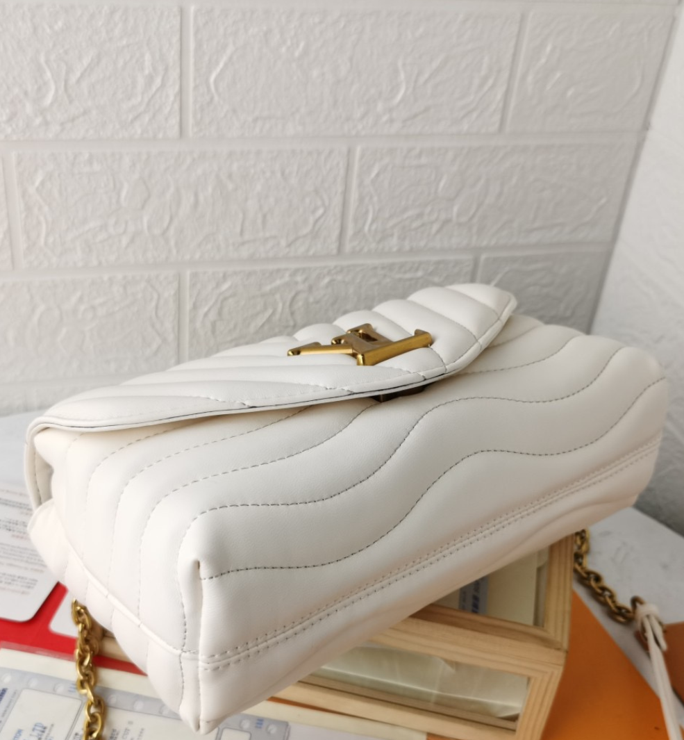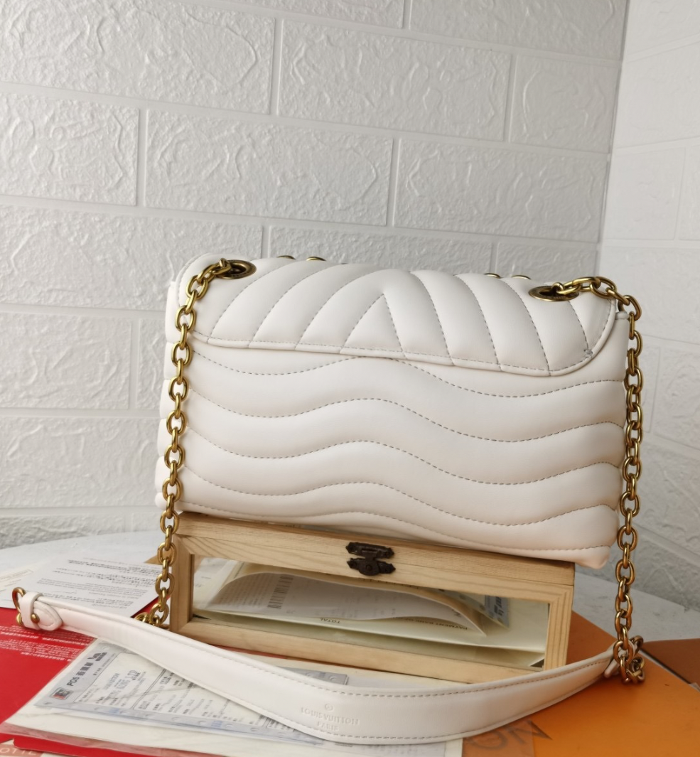A bolsa com corrente New Wave GM apresenta uma superfície matelassada e proporções oversized. Espaçosa e sofisticada, ela tem um estilo chic e urbano. O modelo é inconfundível graças ao seu matelassado em V e ao efeito vintage das LV Initials douradas. Uma corrente deslizante, passando por ilhós gravados, permite carregar a bolsa no ombro ou na transversal.