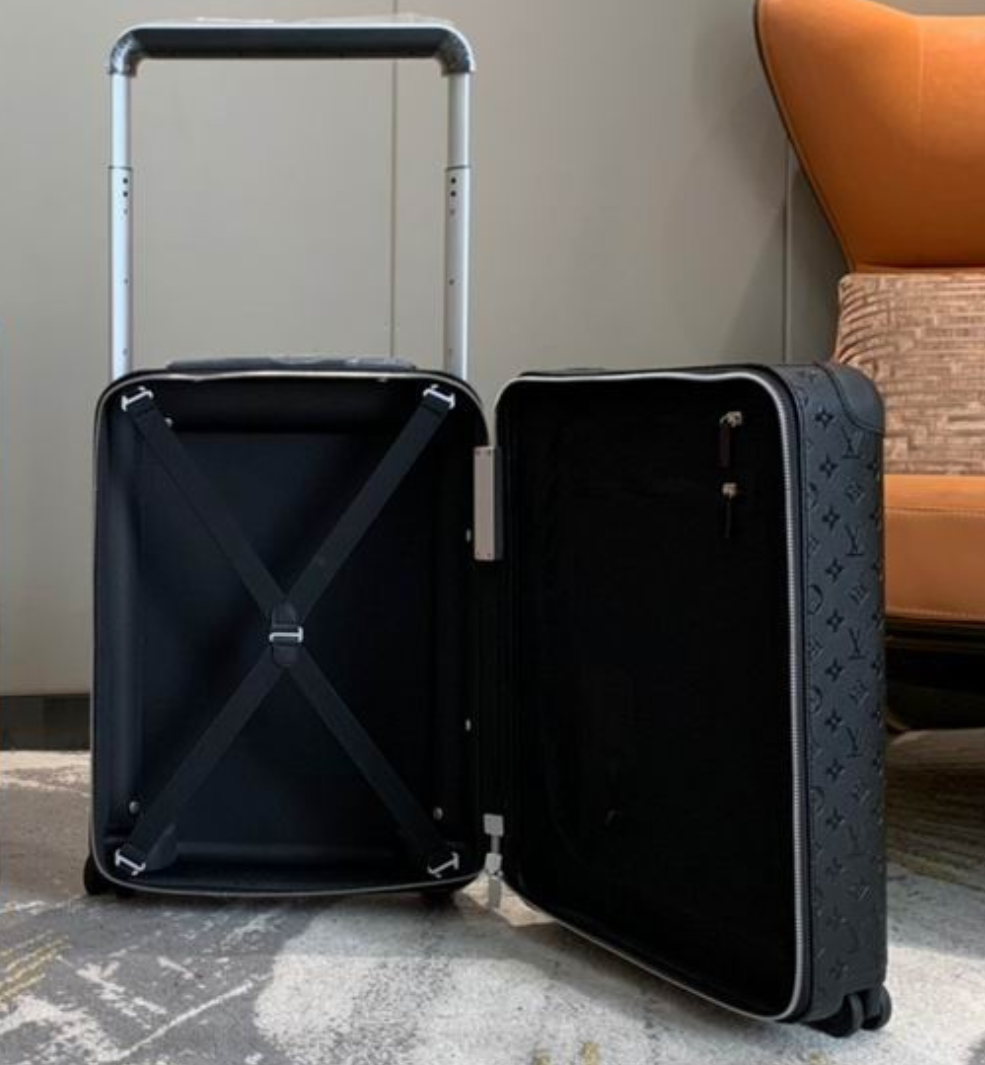 A mala Horizon vem em um suntuoso couro preto macio com uma versão oversized do icônico padrão Monogram da Louis Vuitton em alto-relevo. Compacta o suficiente para ser usada como mala de bordo, ela é fácil de carregar graças às quatro rodinhas duplas e à haste extralarga. Uma mala de viagem prática e feminina com um visual exclusivo e discreto.